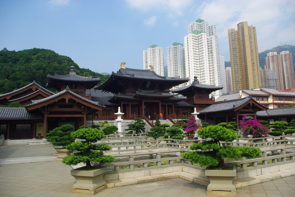 香港 志蓮淨苑以盛唐敦煌莫高窟第172窟北「觀無量壽經變」圖作為佛寺設計規劃藍本,以中軸線為主體布局,呈現對稱、均衡的唐代建築風格。小部份的建築手法亦採日本「和樣」形式。全棟建築物完全以檜木打造,是現在世界上最大的手造木構建築群。