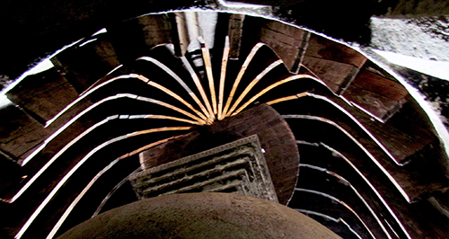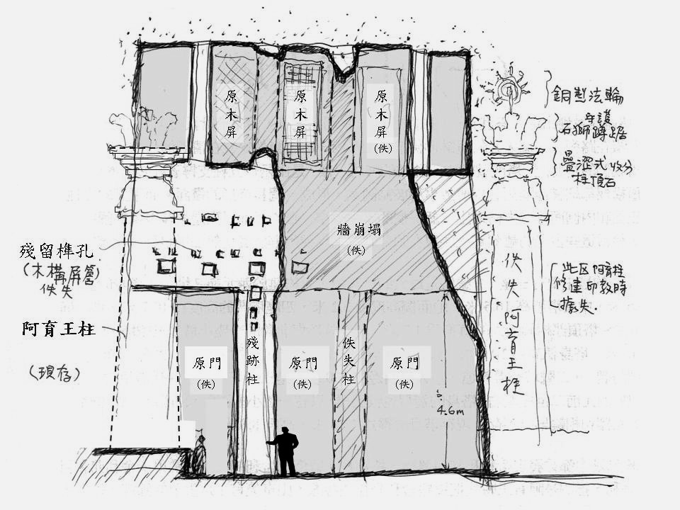 天井高14公尺,前側上方設有採光明窗。整個空間比例良好,所有的建築要素和光皆聚集於佛塔上,其透視效果給予參訪者深刻的印象。