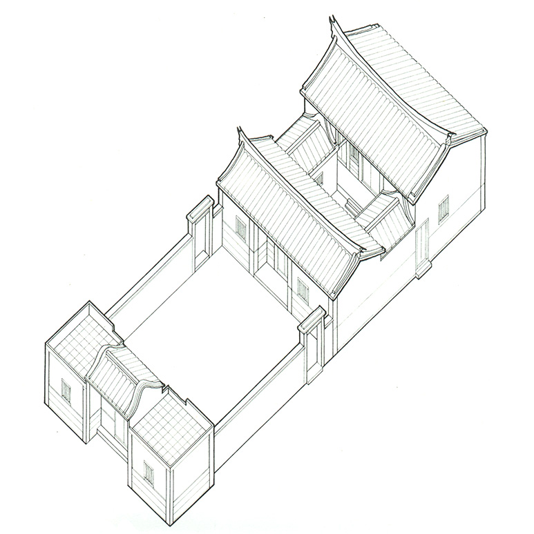第四種,向後增建第三落,即以原有建築為基礎,向後增建一落屋宅,本屋宅多為次要使用空間,如倉庫等。
