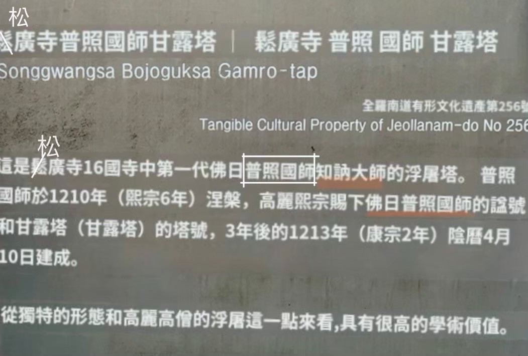 松廣寺(韓語:송광사/松廣寺 Songgwangsa )是一所位於韓國全羅南道順天市的佛教寺院。其為韓國佛教宗派之一的曹溪宗之發祥地。因高麗時代有16位國師輩出於此,被人稱為「僧寶寺剎」(僧寶為三寶之一)。松廣寺內存有韓國國內數量最多的歷史文化財產。現今其為韓國代表性的進行禪修行的寺院。三寶是佛教的教法和證法的核心。簡單地說,三寶指佛寶(天)、法寶(地)、僧寶(人)。 文字來源:維基百科
