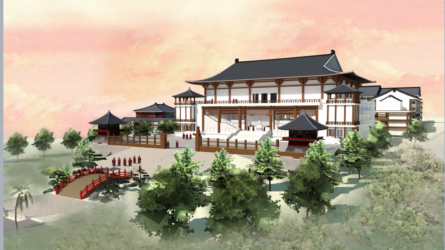 依承傳統建築古典規制「伽藍七堂」精神,依中軸開展出:大門、中門、佛殿。並依序水平鋪陳出左右側殿,併呈鐘樓、鼓樓 、講堂、經藏、五重塔等七件主建物。於2024年5月啟用。