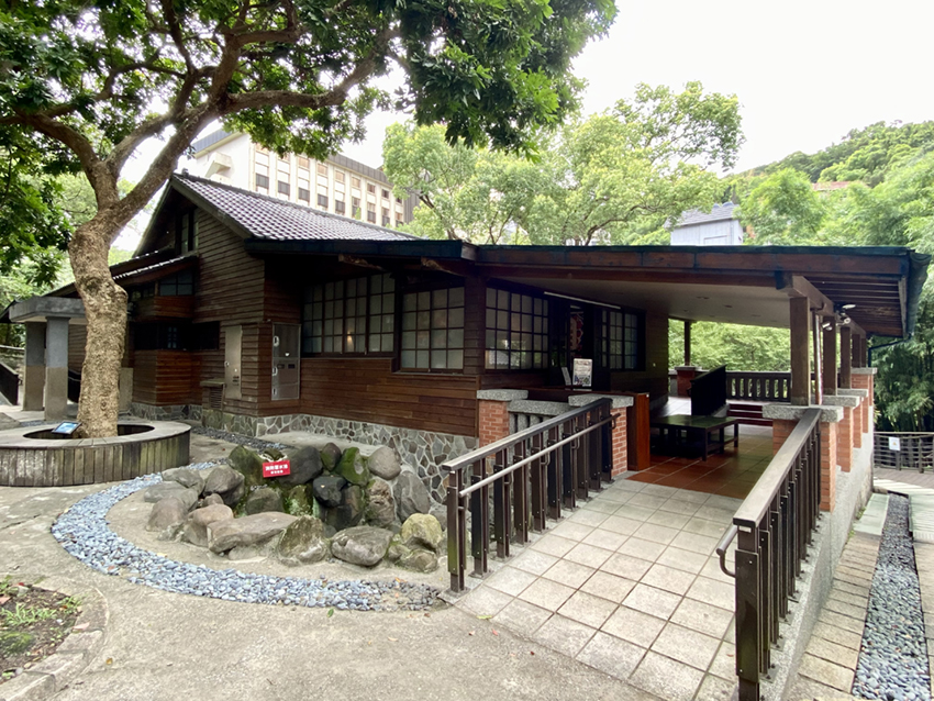 梅庭座落於北投一號公園內,建築座南朝北,北面臨中山路,路旁樹影間依稀可見日治時代的防空壕溝;南面臨北投溪,可遠眺綠山、俯瞰溪景;西面緊鄰市立露天溫泉池與文物博物館,距離新北投捷運站約5分鐘路程;東面為公園木棧步道,可步行至瀑布區。