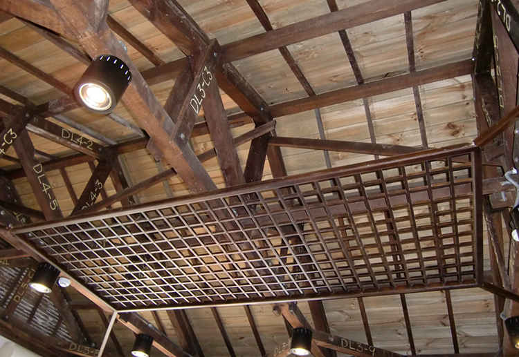 至此,床組木架的高度即與木地檻等高,最後於格柵上方鋪木地板,待鋪上榻榻米後,室内地面高度即大致和門檻齊高。如果是壁龕的床組,則較一般房間地板床組略高。